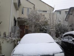 田舎在住の本郷です。 朝起きたらご覧の通り。 今年になって3度目です。 前の大雪では、2回ともチェーンを装着してようやく家にたどり着きました。 途中の坂路では、乗り捨ての車が多数有りました。義理の父もそのうちの一人。夜中に迎えに行きました。 念の為、今日はチェーン携行で出勤です。